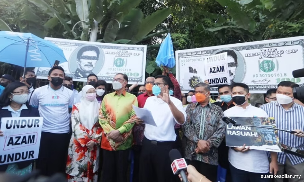 Protes pada 2022 itu berpunca daripada satu lagi kontroversi pemilikan saham yang melibatkan Azam, selepas timbul dakwaan mengenai dirinya memiliki saham dalam dua syarikat pada tahun 2015.