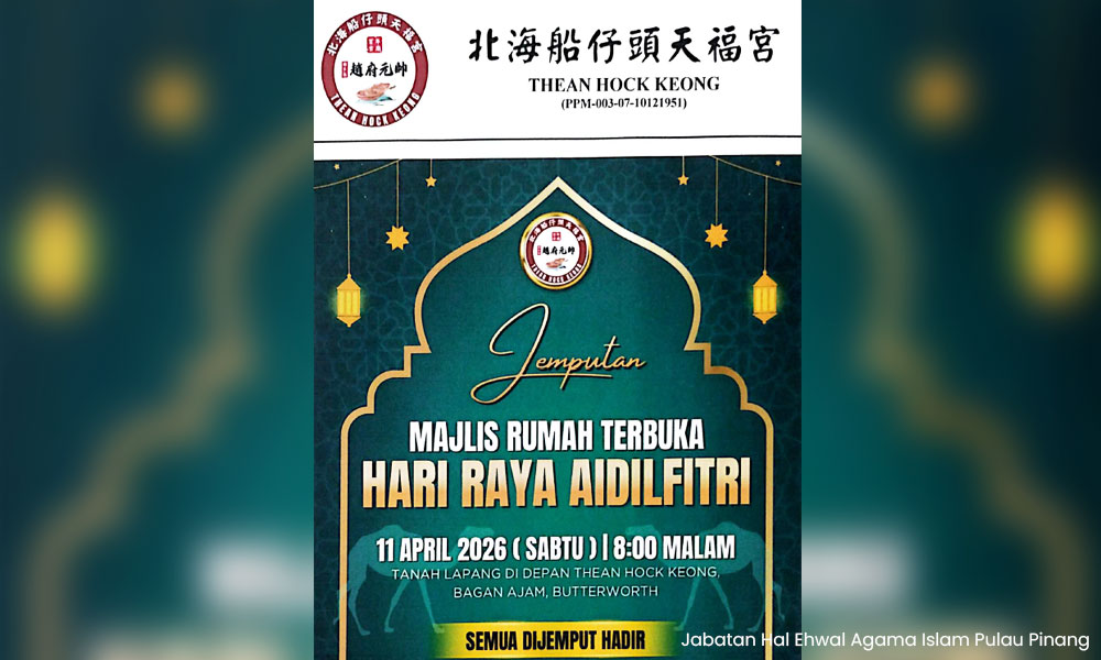 “Untuk makluman pihak Persatuan Tean Hock Keong semua aktiviti agama Islam termasuklah apa-apa sambutan yang berkaitan dengan hari raya Aidilfitri adalah tertakluk kepada kebenaran Majlis Agama Islam Negeri Pulau Pinang,” kata pengarah JHEAIPP Marzuki Hassan, dalam satu surat.