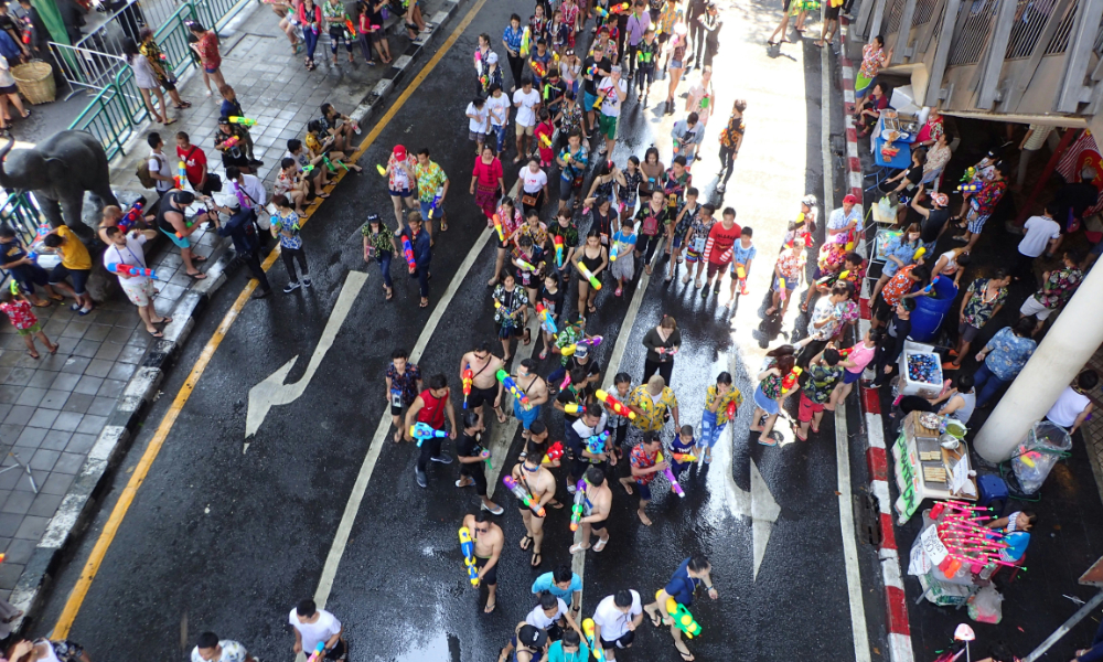 Songkran, Tahun Baharu tradisional Thailand, disambut dari 13 hingga 15 April dan diraikan dengan pertemuan keluarga, memberi penghormatan kepada warga emas serta nenek moyang, selain upacara membersihkan patung Buddha.