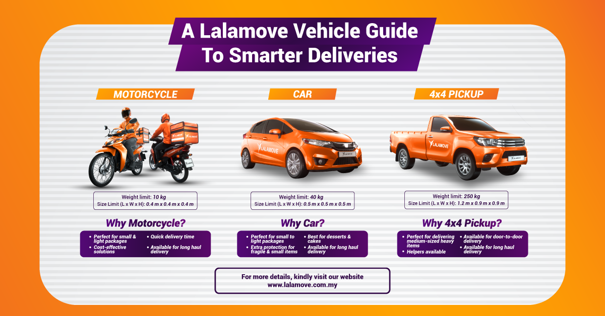 To prevent these issues, it’s important to match the size and weight of your delivery to the right vehicle. For small items like lunch boxes or light parcels (under 10kg), motorcycles are the fastest and cheapest option.
