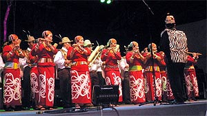 The Kelapang Kelabit Bamboo Band from Bario, Sarawak, who serenaded the crowd with hymns played on bamboo instruments was the biggest group to perform with 30 members. It started the ball rolling on the festival's first night.