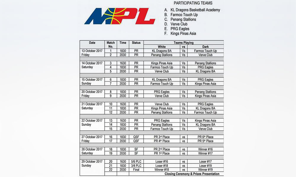 Sebanyak lima pasukan tempatan dan satu dari Filipina akan berentap dalam kejohanan di Stadium MABA Kuala Lumpur.