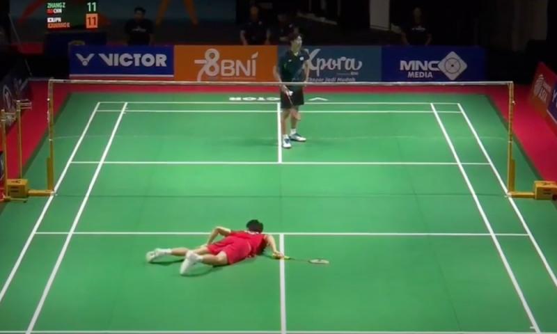 Insiden itu berlaku ketika Zhang, 24, sedang menentang lawan dari Jepun, Kazuma Kawamo dalam perlawanan peringkat kumpulan di Arena Sukan Among Rogo.