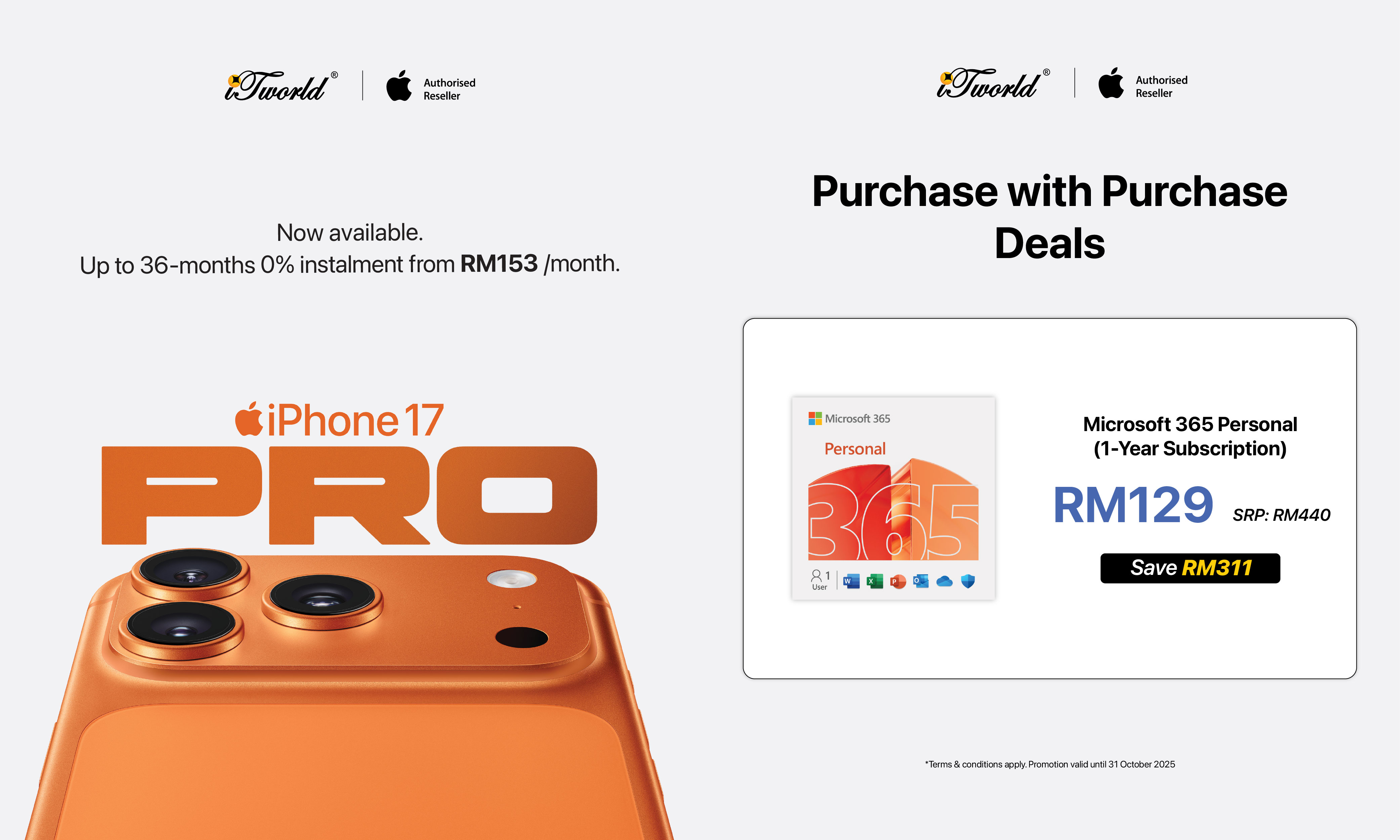 The new iPhone lineup is now available with exclusive rewards and the Microsoft 365 Personal productivity offer at iTworld and GLOO retail stores nationwide - www.itworld.com.my/about-us, as well as online at www.itworld.com.my/now-available-iPhone-17